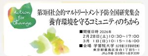 第3回社会的マルトリートメント予防全国研究集会「養育環境を守るコミュニティのちから」を、2月28・3月1日に東京にて開催します。 マルトリートメントのない社会を話し合う場です。概念を理解し、自分を振り返り、アクションへの […]